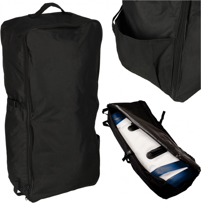 Vezměte své vodní dobrodružství kamkoli s tímto pevným a lehkým batohem na SUP. Odolná polyesterová tkanina spolehlivě chrání prkno i příslušenství, zatímco plnohodnotný zip umožňuje rychlý přístup a bezpečné uzavření obsahu. Díky promyšleným rozměrům 38 × 84 × 24 cm pohodlně pojme nafukovací SUP a nezbytné doplňky.