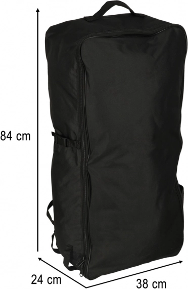 Rozměry 38 × 84 × 24 cm pojmou prkno i výbavu. Dlouhý zip usnadňuje vkládání a vyjímání a drží obsah bezpečně uvnitř.