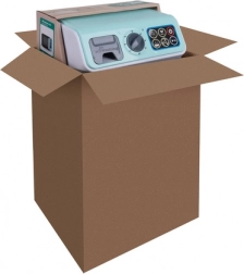 Pračka, návod k použití, barevné balení, hnědá transportní krabice