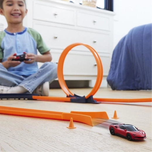 Ovladač s funkcí turbo poskytuje extra zrychlení, které oceníte při průjezdu smyčkami i v cílové rovince. Díky frekvenci 2,4 GHz nedochází k rušení signálu, takže můžete závodit současně s více RC auty.