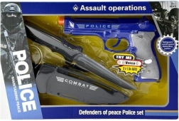 Připravte se na akční dobrodružství s policejním setem PLEJO – ideální pro malé strážce zákona. Set obsahuje lehký plastový revolver se zvukem a bezpečný dětský nůž. Hra podporuje představivost, hraní rolí a dlouhotrvající zábavu díky odolnému plastu.
