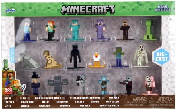 Tato prémiová sada přináší 18 pečlivě zpracovaných kovových nano figurek inspirovaných světem MINECRAFT. Díky kompaktní výšce okolo 4 cm a stabilním podstavcům se skvěle hodí na poličku, stůl i do vitríny. Od Creepera přes Endermana až po zvířata a hrdiny – tato vlna nabízí pestrý mix, který potěší malé i velké fanoušky.