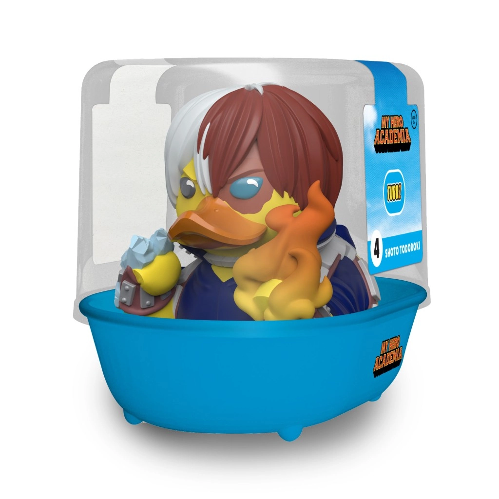Tato sběratelská kachnička TUBBZ přináší na poličku nezaměnitelný styl Shoto Todoroki – půlka led, půlka oheň. Vyniká precizními detaily, kvalitním PVC materiálem a prvotřídním lakováním, díky kterým vynikne v každé kolekci My Hero Academia.