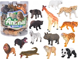2× panda, žirafa, zebra, 2× nosorožec, slon, tygr, 2× hroch, 2× gepard, lední medvěd, krokodýl, 2× medvěd hnědý, lev, puma
