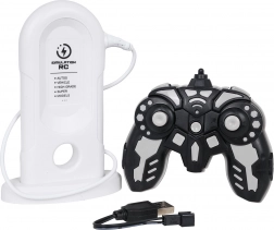 Součástí je stanice simulující nabíjení i USB kabel. Dobíjecí akumulátor 3,7 V je v balení, stačí vložit baterie do ovladače.