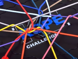 - Logická desková hra s elastickými provázky