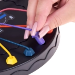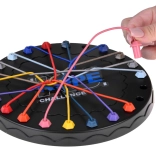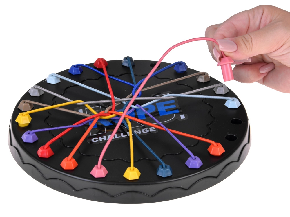 Chytrá logická hra s elastickými provázky na kruhové desce procvičí logické myšlení, postřeh, trpělivost i jemnou motoriku. Pomocí barevných šňůrek a kolíčků vytváříte různé vzory a postupně je rozmotáváte podle zvoleného zadání. Ideální pro děti i dospělé, pro hru o samotě i rodinnou zábavu.
