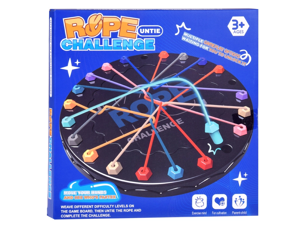 Objevte zábavný trénink mozku s kruhovou deskou, barevnými kolíčky a elastickými šňůrkami. Hráči propojováním bodů vytvářejí spleti a poté hledají správné pořadí kroků, jak je uvolnit a zcela rozplést. Hra nabízí více úrovní obtížnosti – od jednoduchých vzorů pro začátečníky až po komplexní výzvy pro pokročilé.