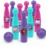 - Kompletní set: 9 kuželek (růžové, fialové, tyrkysové), 2 míčky, sada samolepek s Gabi a kočičími kamarády.
