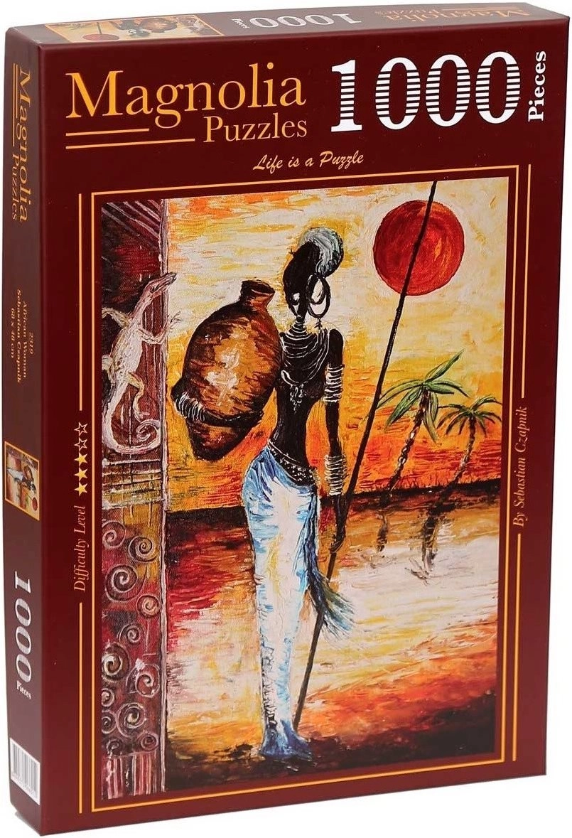 Vydejte se na tvořivou cestu s puzzle Afričanka 1000 dílků od značky MAGNOLIA. Detailní ilustrace a kvalitní tisk zaručují ostré barvy a příjemný zážitek ze skládání. Hotový obraz se stane stylovou dekorací vašeho interiéru.