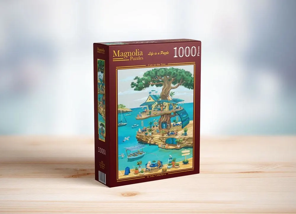 Objevte radost ze skládání s krásným motivem koček odpočívajících na větvích stromu. Toto puzzle o 1000 dílcích nabízí příjemnou míru výzvy a po složení vytvoří dekorativní obrázek o rozměrech 48 × 68 cm, který potěší každého milovníka koček i puzzle.