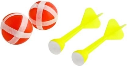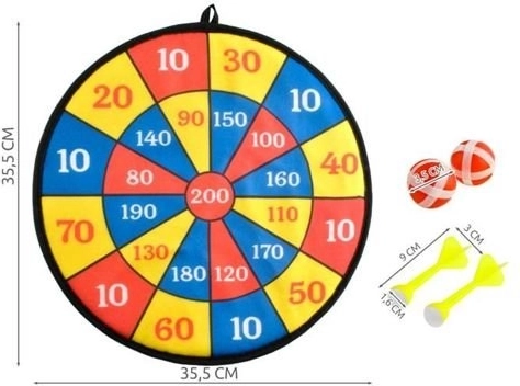 - Hotová sada: terč, 2 šipky a 2 míčky pro rychlý začátek