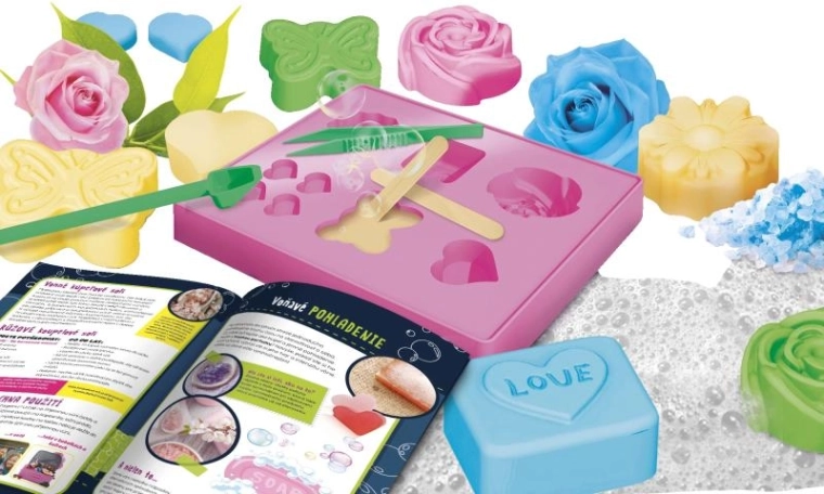 Sada je navržena tak, aby byla bezpečná a snadná na použití. Zvládnou ji i začátečníci – stačí roztavit glycerinové vločky, přidat barvu a vůni, nalít do formiček a nechat ztuhnout. Součástí balení je dřevěná špachtle pro míchání a odměrka pro přesné dávkování.