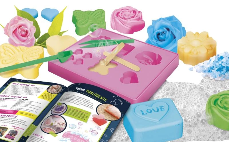 Tato kompletní sada na výrobu mýdel vám umožní snadno vytvořit vlastní, voňavá a barevná mýdla s motivem květin. Díky přiloženým glycerinovým vločkám, barevné esenci a vůni si můžete přizpůsobit odstín i intenzitu aroma přesně podle svých představ. Formičky s květinovými tvary dodají vašim mýdlům elegantní vzhled, který potěší jako osobní dárek i jako doplněk do koupelny.