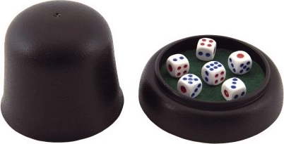 - 6 hracích kostek, kalíšek