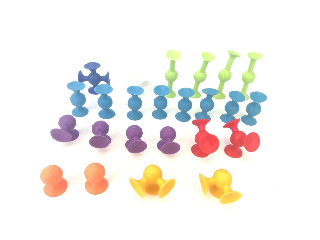 Hrací set silikonových přísavek přináší dětem nekonečné možnosti stavění, skládání a tvoření. Díky přísavkám jednotlivé dílky pevně drží téměř kdekoliv – na okně, stole, ve vaně či na cestovních stolcích – a přitom jdou snadno odlepit bez zanechání stop.