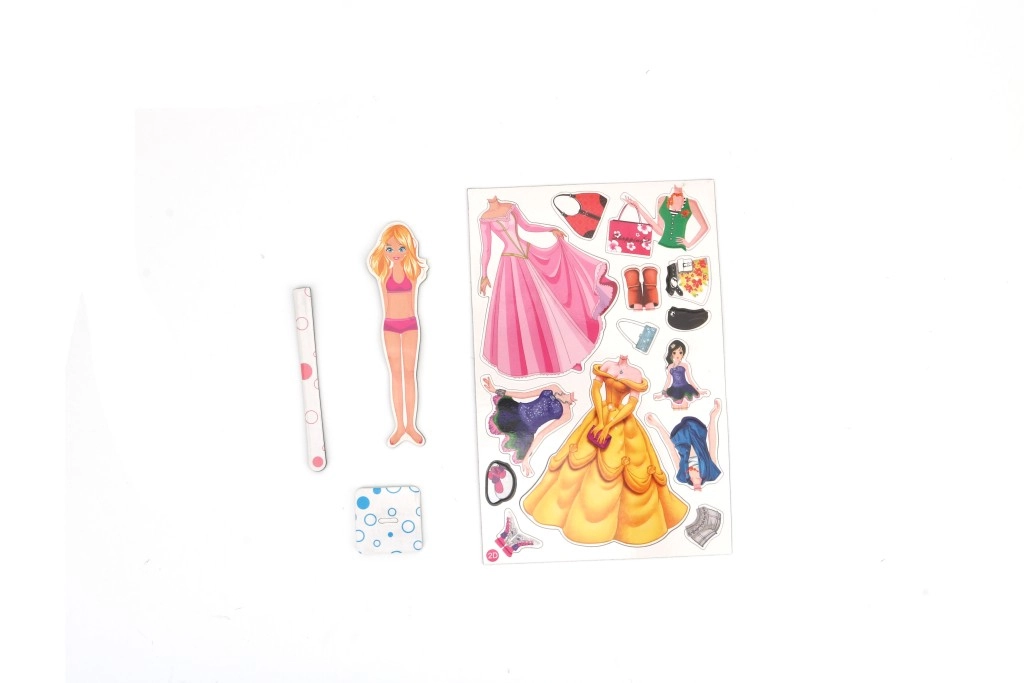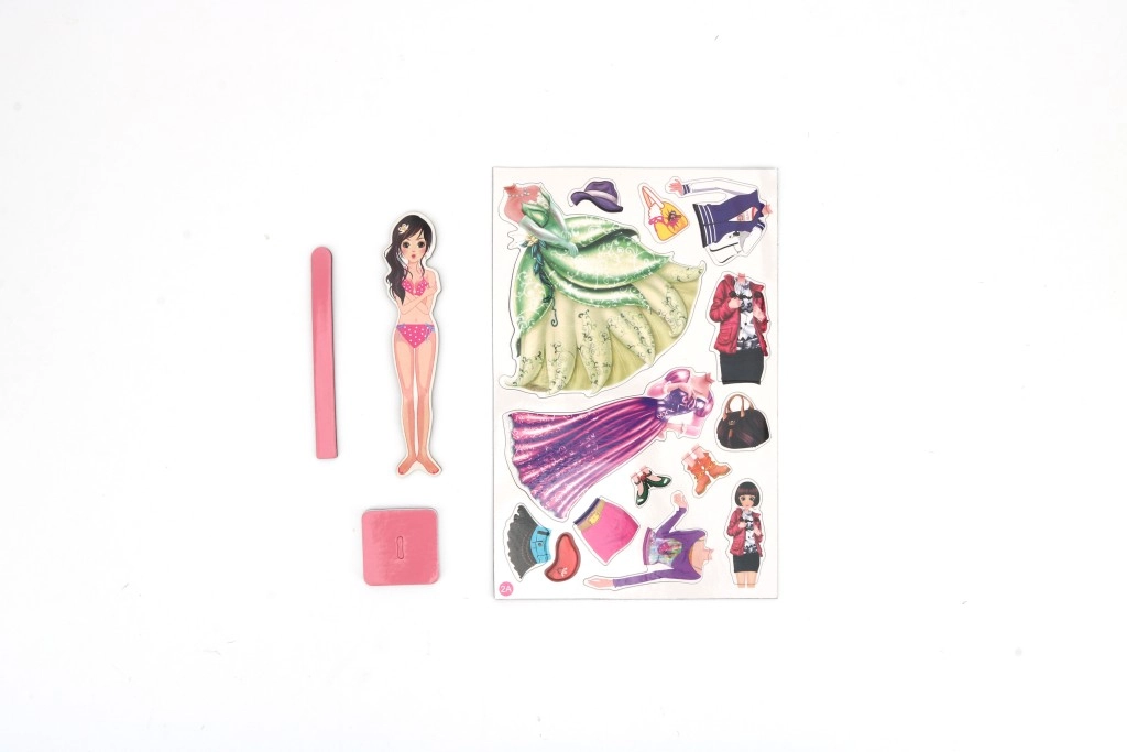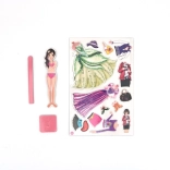 Magnetické oblékání panenky je ideální hračka pro malé stylistky a stylisty. Díky barevným magnetickým dílkům a samolepkám děti snadno vytvářejí nové looky, střídají šaty, boty i kabelky a trénují kombinování barev a stylů. Set je znovupoužitelný, odolný a skvěle se hodí na cesty.