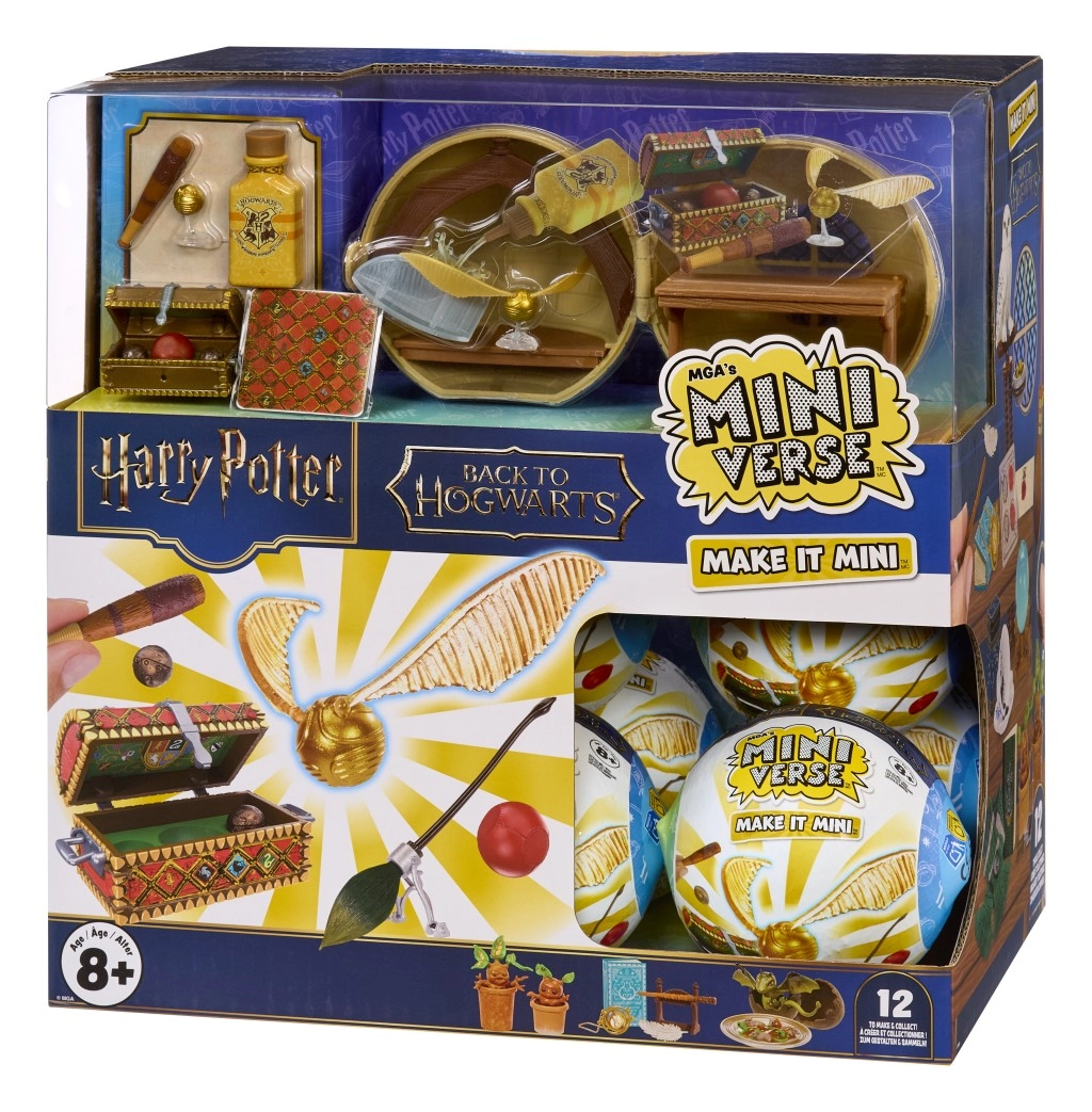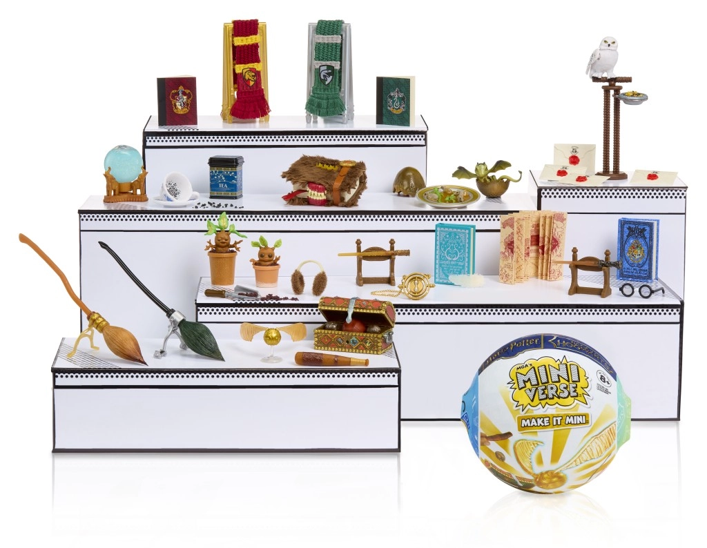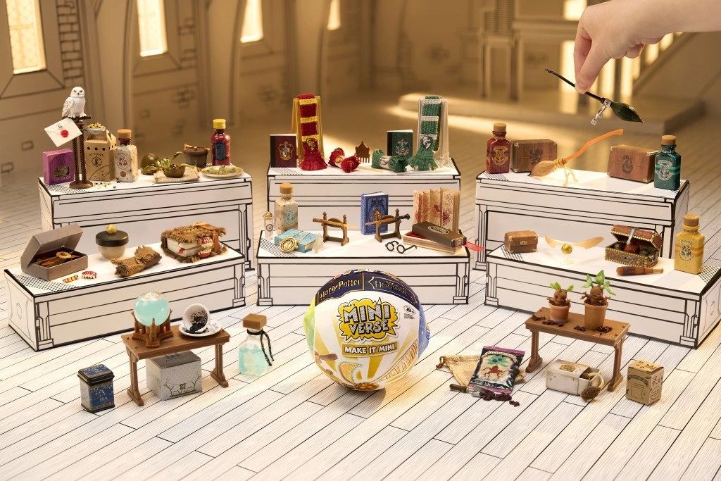 Mini hračky… velká překvapení! Každá tajemná koule MINIVERSE ukrývá pečlivě navržené dílky a „ingredience“, se kterými si snadno vytvoříte mini repliky ikonických předmětů z filmů HARRY POTTER. Stačí rozbalit, postupovat podle návodu, sestavit a zafixovat na světle – a vaše mini kouzlo je na světě.