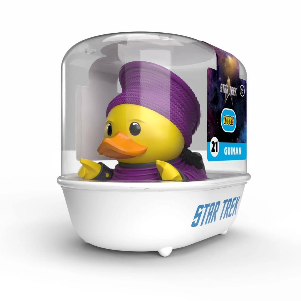 Legendární barmanka Guinan ze Star Trek přichází v hravém zpracování Tubbz – jako kachnička pro vášnivé fanoušky i sběratele. Tato první edice vyniká precizními detaily, charakteristickým kloboukem a kvalitním PVC materiálem, který zvýrazňuje barvy i tvary.