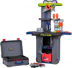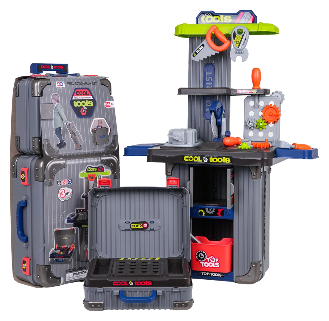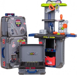 Přenosný dětský dílenský set 3v1, který se z kufříků promění v stabilní pracovní ponk. Nabízí bohaté příslušenství, odolné plastové provedení a nekonečné možnosti kreativní hry pro děti od 3 let. V sadě najdete svěrák, pilu, šroubky, šroubováky, klíče, ozubená kola a další doplňky – vše přehledně uložené v praktických kufrech na kolečkách.