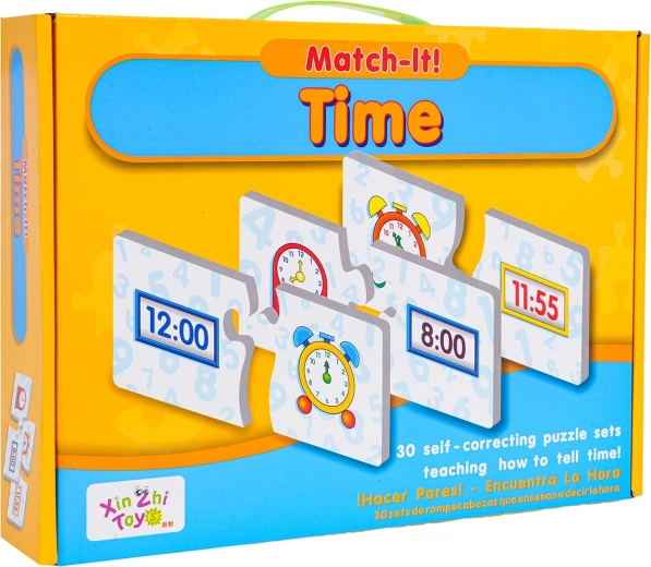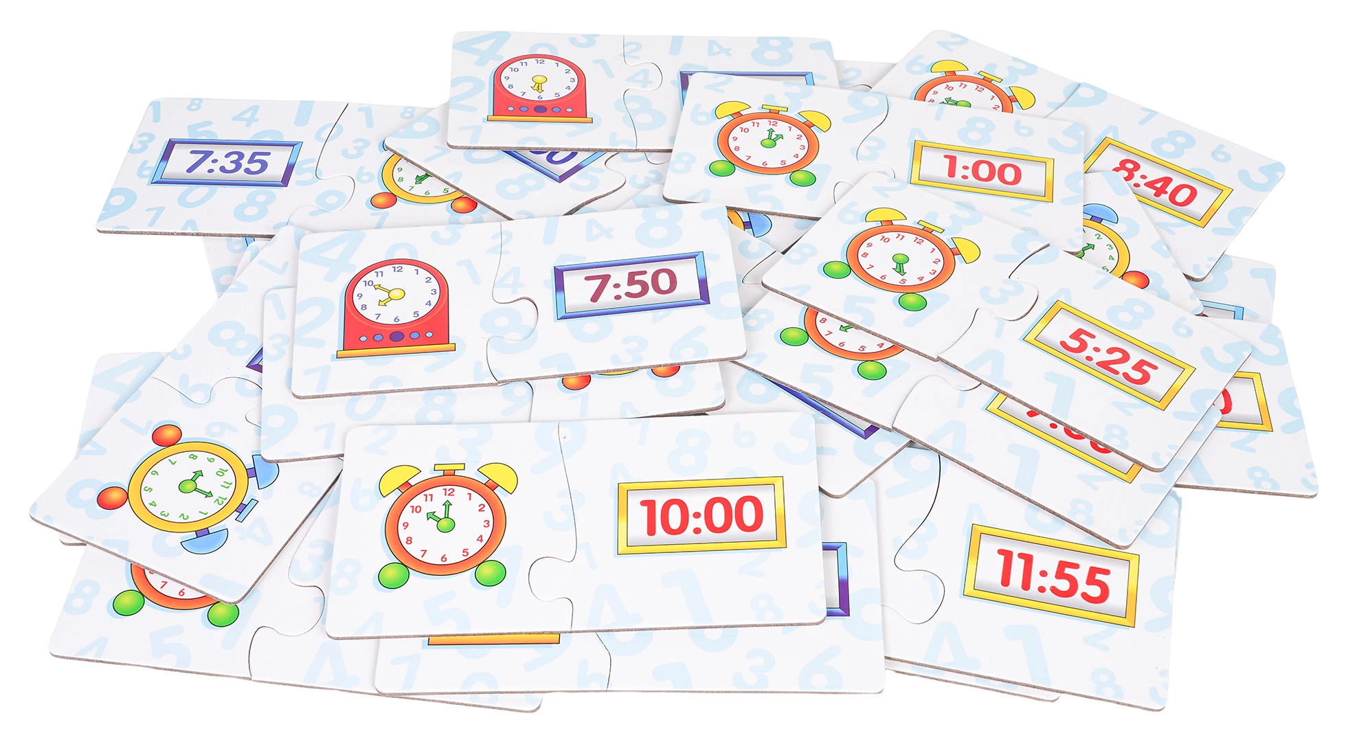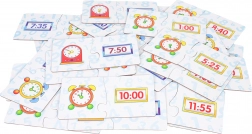 Zábavná hra pro děti od 3 let, která je naučí poznávat čas. Sada obsahuje 60 pevných dílků, ze kterých se skládá 30 dvojic – na jedné straně je ciferník, na druhé digitální zápis. Děti si procvičí rozpoznávání hodin, logické párování a jemnou motoriku, a zároveň rozvíjejí pozornost a koncentraci.