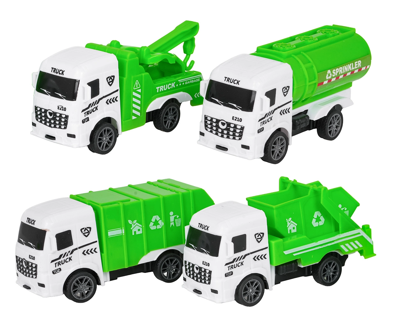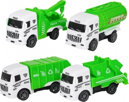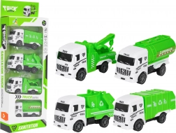 Tato sada malých servisních vozidel věrně napodobuje skutečné stroje ze silnic měst. Autíčka jsou vyrobena z kvalitních materiálů, mají hladce se točící kola pro plynulou jízdu a díky kompaktním rozměrům si je dítě snadno vezme kamkoli. Detaily, jako recyklační piktogramy, cisternový nástavec nebo odtahové rameno, dělají hru ještě realističtější.