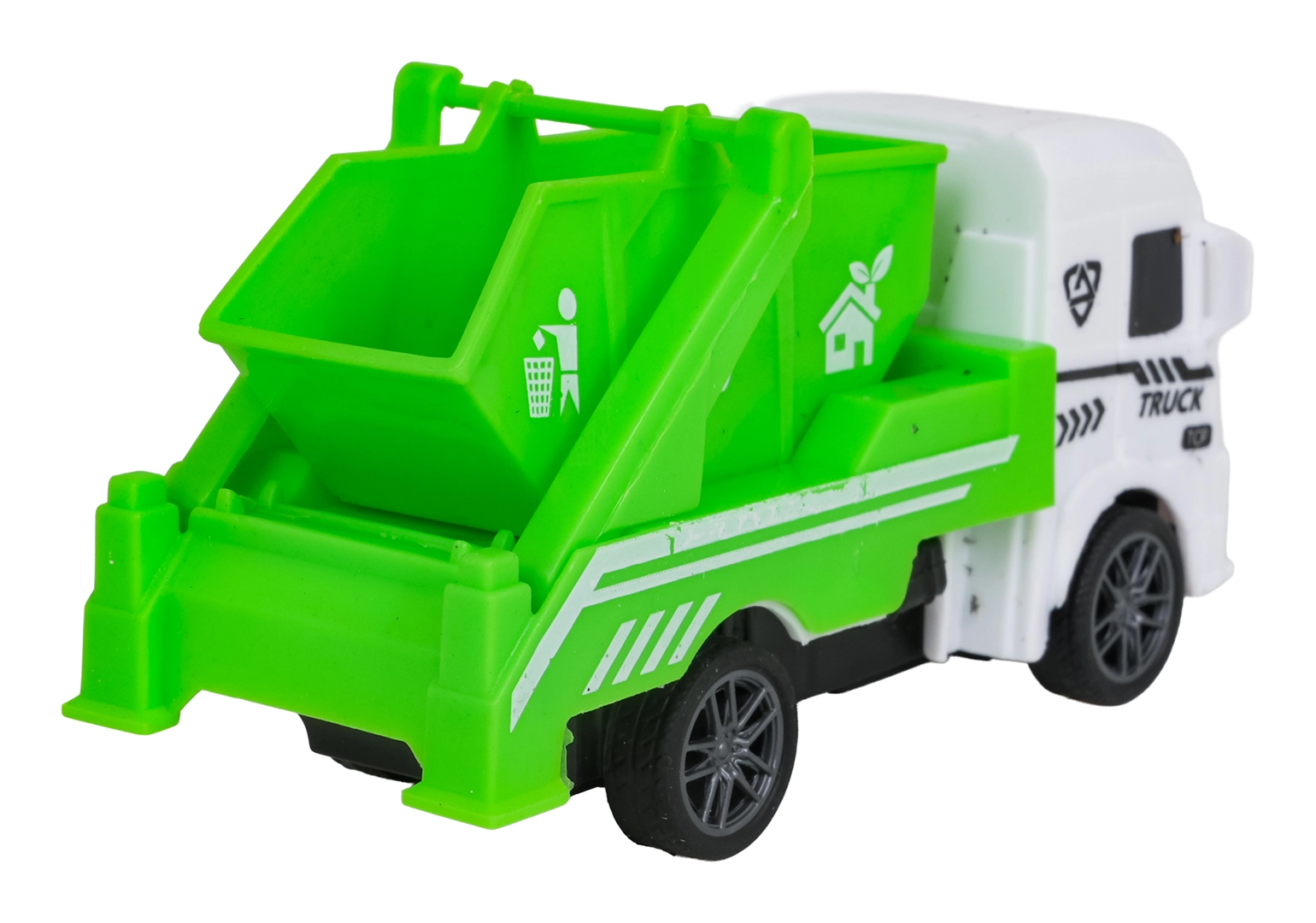Otevíratelné víko popeláře, vyklápěcí korba, pohyblivé odtahové rameno a realistická cisterna podporují fantazijní hru.