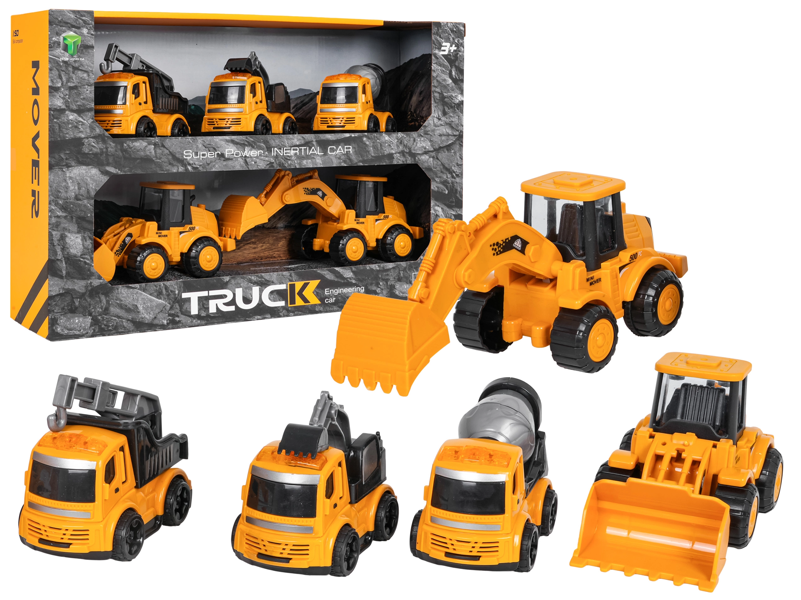 V sadě najdete: bagr, traktor-bagr, jeřáb, míchačku a buldozer. Každý model podporuje kreativní hru, koordinaci oko–ruka a rozvoj motoriky. Díky kompaktním rozměrům se snadno přenáší a skvěle se hodí i jako dárek.