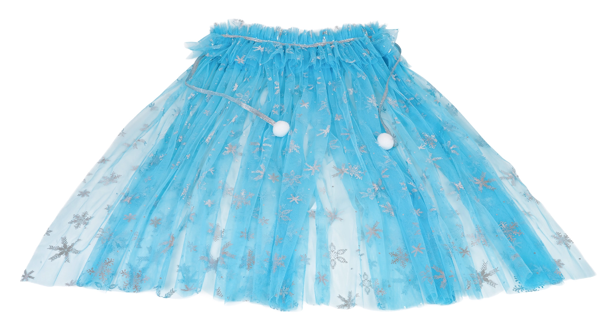 Vzdušný tyl se stříbrnými vločkami a elastickým pasem pro pohodlné oblékání i celodenní hraní.
