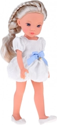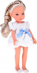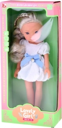 Roztomilá panenka Lovely Girl s dlouhými blond vlasy v copu okouzlí každé dítě. Má pohyblivé končetiny, realistické oči a obličej a je oblečená do bílé šaty s modrou mašlí a perlovým detailem. Díky kvalitnímu plastu a snadno česatelným vlasům je ideální pro předstíranou hru, převlékání a styling účesů.