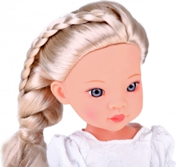 Elegantní panenka o výšce cca 33 cm je vyrobena z odolného plastu a má pohyblivé ruce, nohy i hlavu, takže ji snadno nastavíte do různých póz. Dlouhé blond vlasy v copu lze česat a stylovat, což podporuje kreativitu a jemnou motoriku.
