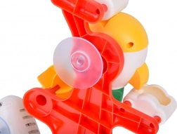 Silné přísavky drží hračku stabilně na hladkých površích, jako jsou obklady nebo vana. Instalace je rychlá a bez nástrojů.