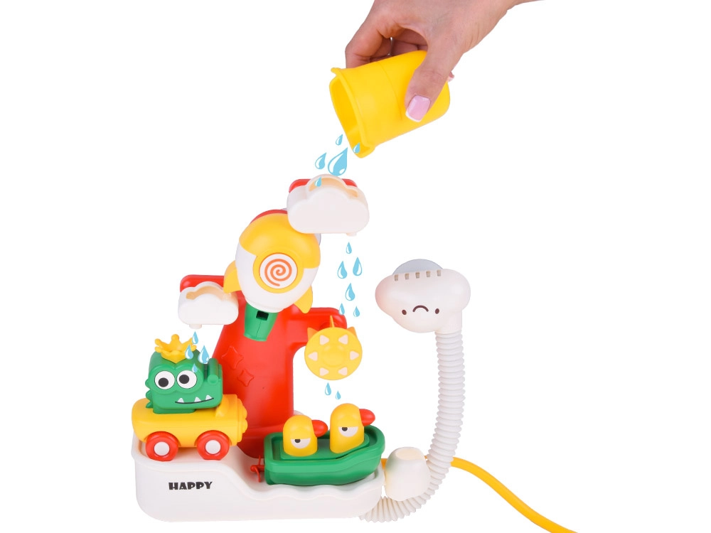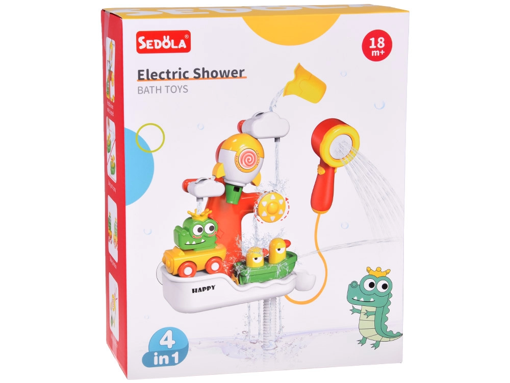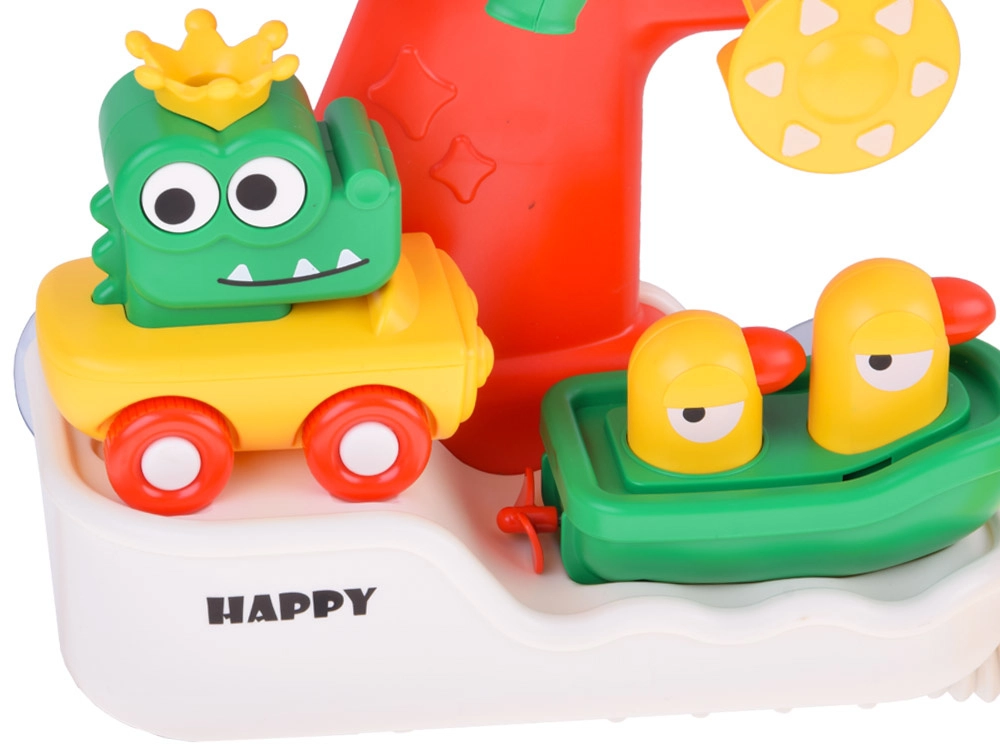 Roztomilá koupací stanice s krokodýlkem přináší dětem nekonečnou porci vodní zábavy. Elektrická pumpa cirkuluje vodu a vytváří efekt nepřetržité spršky, která roztáčí kolečka a aktivuje různé vodní efekty. Součástí jsou také plovoucí kačenky v lodičce, autíčko s krokodýlem a hrneček na nalévání.
