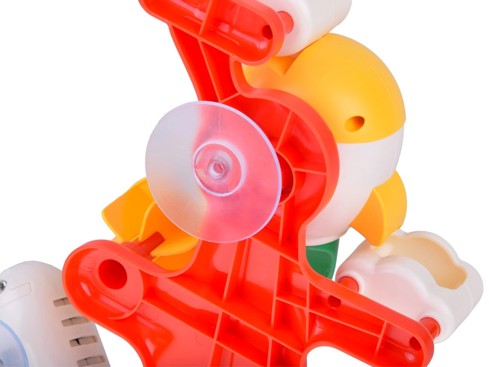 Hračku snadno upevníte pomocí silných přísavek na hladký povrch. Děti si procvičí jemnou motoriku, koordinaci oko–ruka i smyslové vnímání při nalévání, stříkání a pozorování proudící vody. Uzavřený oběh šetří vodu a zjednodušuje používání bez neustálého nabírání.