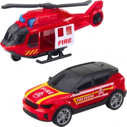 Tato propracovaná sada nabízí dětem akční scénáře od odtahu vozidel po letecké zásahy. Podnosná platforma na přívěsu umožňuje pohodlné naložení a vyložení hasičského auta, zatímco vrtulník s kolečky se může pohybovat i po podlaze jako pozemní vozidlo. O atmosféru se starají tlačítky aktivované světla a zvuky, které dodají hře na autentičnosti.