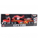 - Nákladní vůz s přívěsem, hasičské auto, hasičský vrtulník, 3× baterie AG13, originální balení