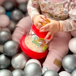 - Senzorická stimulace: kontrastní barvy, pohyb kuliček a jemné zvuky.
