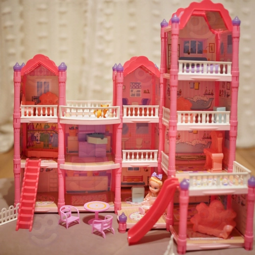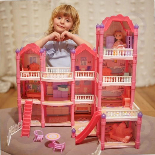 Objevte kouzelný třípatrový domeček pro panenky s růžovou střechou, bohatým vybavením a nočním osvětlením. Sada nabízí 296 dílů včetně roztomilého nábytku, doplňků a panenky, takže si děti mohou samy zařídit každý pokoj. Zjezdovka, schody a terasa přidávají další zábavu a podporují kreativitu, představivost i jemnou motoriku.