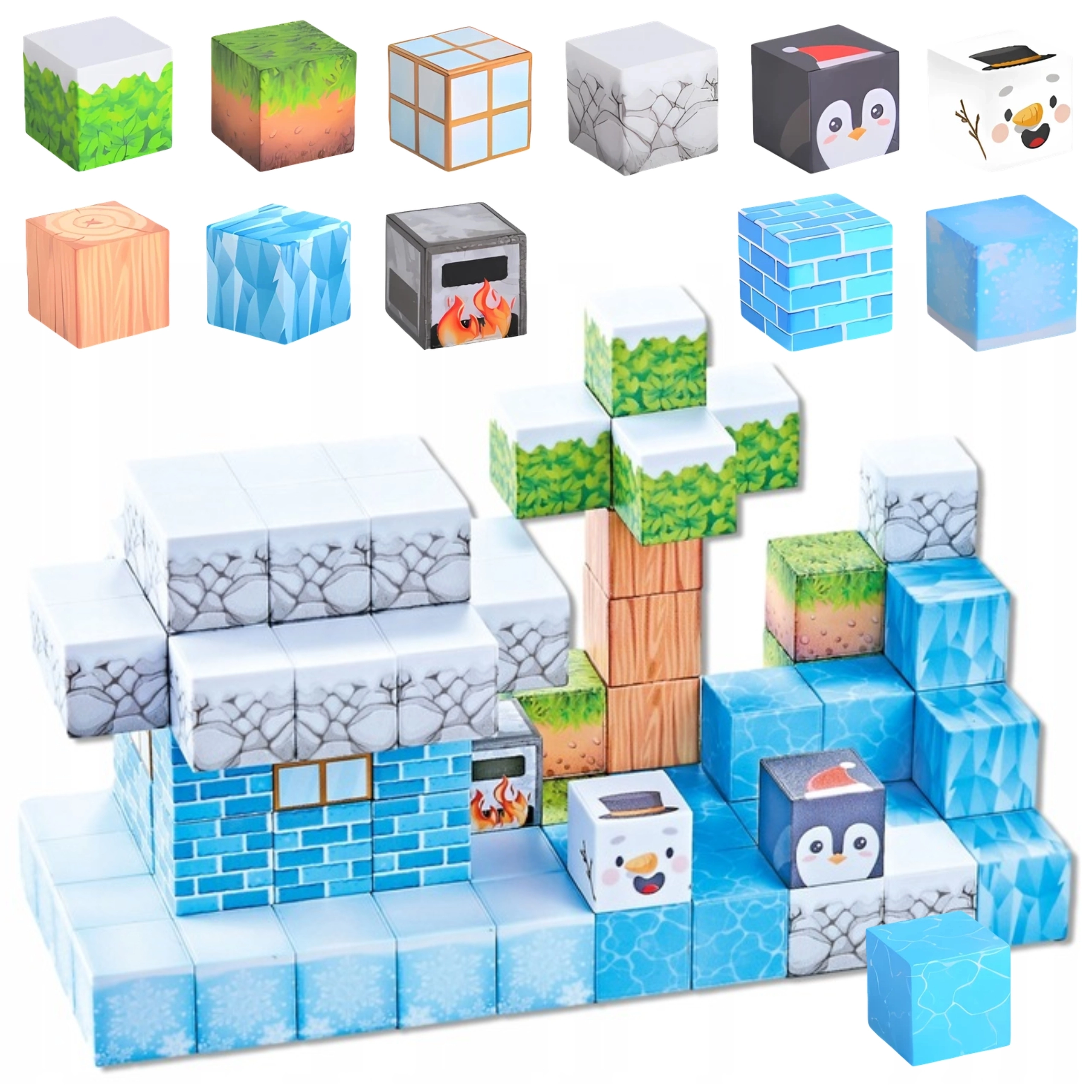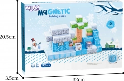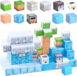 Tento 66dílný set magnetických kostiček v zimním stylu nadchne malé stavitele pestrými vzory ledu, kamene, dřeva, listů a polárních zvířátek. Každý dílek má rozměr 2,5 × 2,5 × 2,5 cm a díky zabudovaným magnetům k sobě bezpečně přilne, takže konstrukce drží bez potřeby lepidla či dalších spojek.