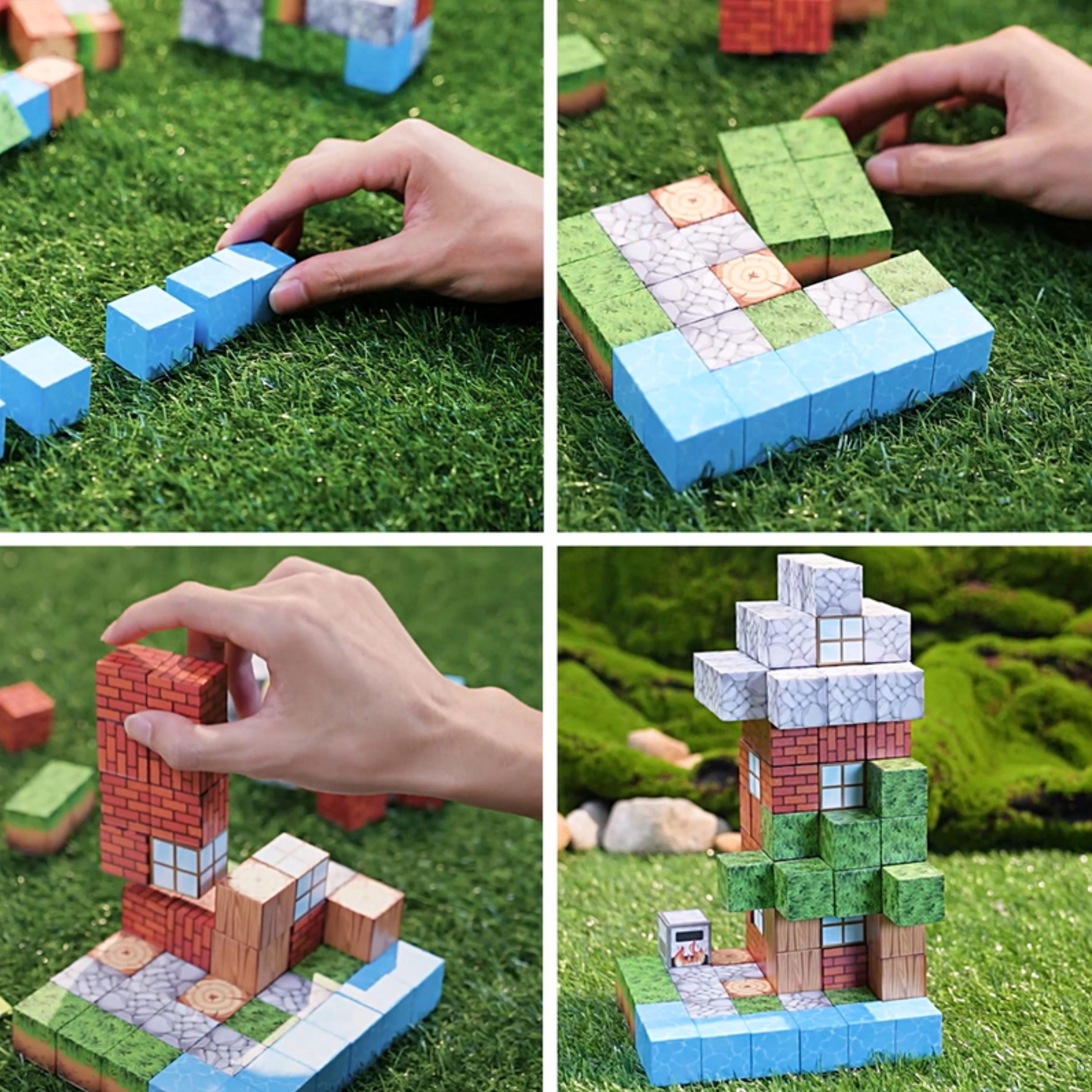 Magnetické kostičky WOOPIE ve vzhledu kamene, dřeva, cihel, trávy a vody přinášejí neomezené možnosti stavění. Díky silným magnetům se dílky rychle a pevně spojí, takže vznikají stabilní stavby bez lepidla. Skvělé pro domácí hraní i společnou zábavu ve skupině.