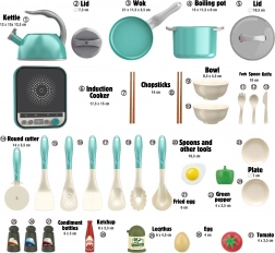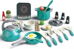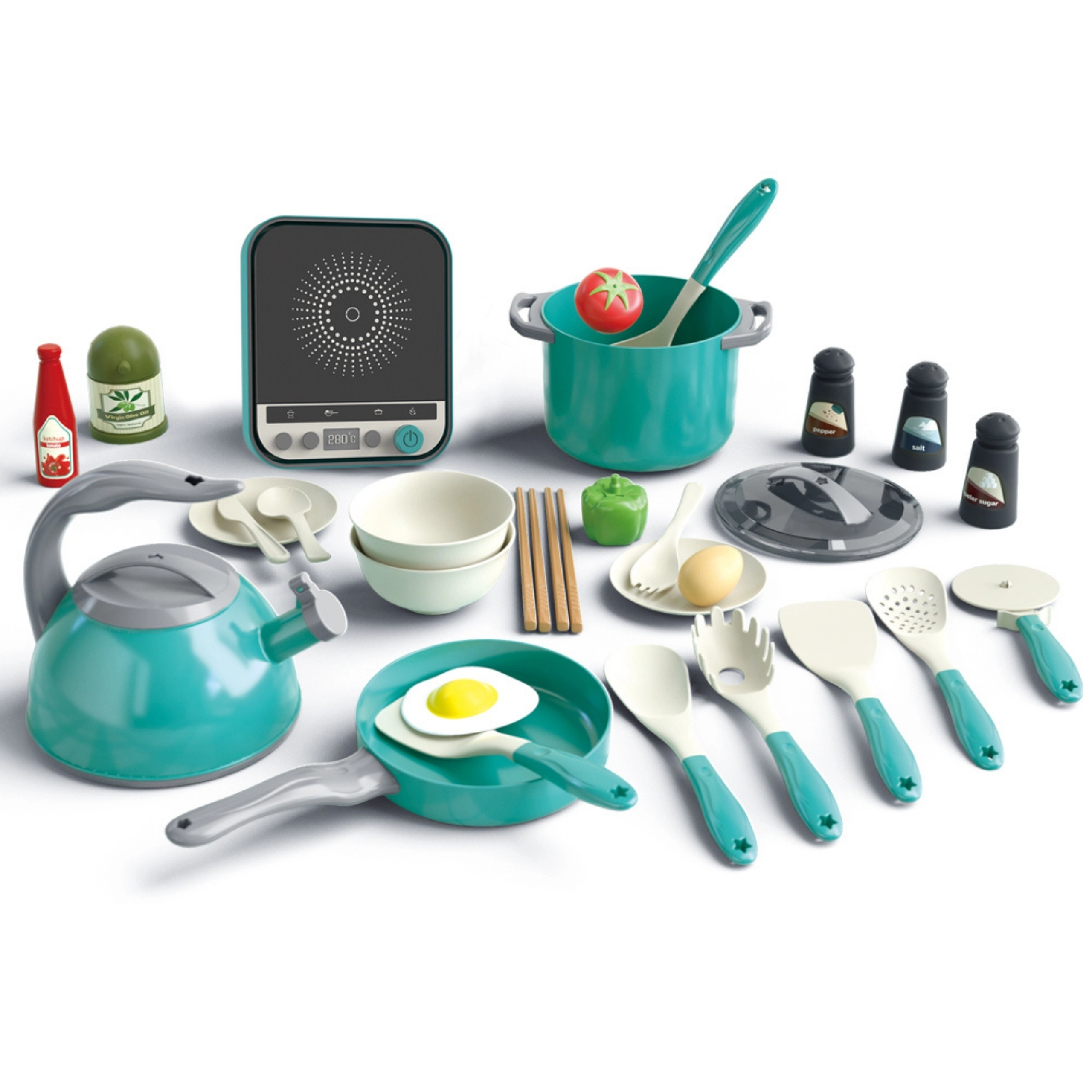 Obsáhlá sada pro malého kuchaře od značky WOOPIE přináší realistickou hru na vaření s až 30 díly. Děti si užijí napodobování dospělých a rozvinou svou kreativitu, představivost i jemnou motoriku. Nechybí indukční varná deska, hrnce s pokličkami, pánev se sázeným vejcem, konvice, příbory, zelenina a koření – vše pro zábavné a realistické hraní rolí.