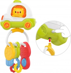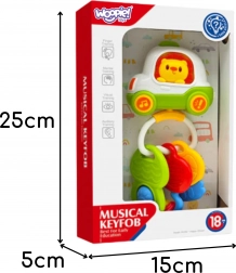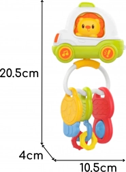 - interaktivní autíčko s lvem, 3 klíčky různého tvaru, měkké kousátko, závěsná smyčka, dárkové balení