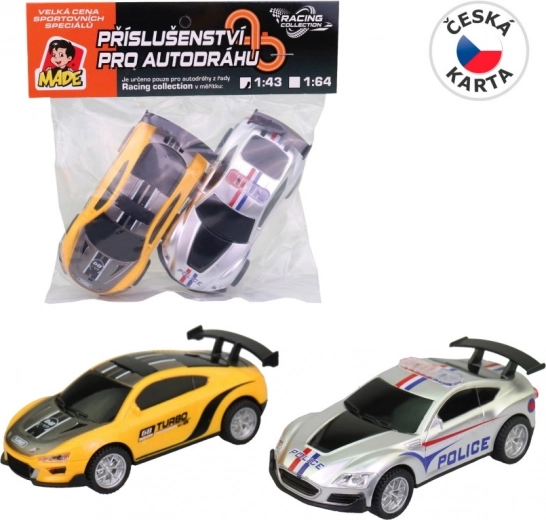 Doplňte svou autodráhu o 2 náhradní autíčka v měřítku 1:43, určená pro řadu Racing Collection. V balení najdete dva různé barevné modely z odolného plastu, ideální pro děti od 3 let a pro kluky, kteří milují závodění.