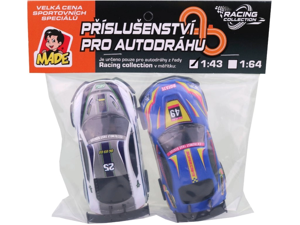 Doplňte svou autodráhu o náhradní autíčka v měřítku 1:43. Tato sada obsahuje 2 kusy ve dvou různých barvách, určené výhradně pro autodráhy řady Racing Collection. Odolné plastové zpracování, vhodné pro děti od 3 let.