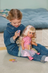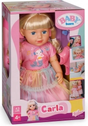 Panenka BABY born Carla je ideální kamarádka pro kreativní hraní a vlasové experimenty. Dlouhé nylonové vlásky se snadno češou i upravují a s přiloženým kartáčem, gumičkami a sponkami vytvoříte nespočet účesů. Realistický vzhled, pohyblivé končetiny a možnost samostatného stání podporují fantazii a role-play.