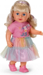 Carla nosí roztomilé tričko s potiskem, duhovou tylovou sukni a stylové boty. Pevné tělíčko je vhodné i do vody, takže si užijete zábavu při koupání ve vaně. Skvělé provedení a odolné materiály potěší děti i rodiče.