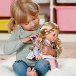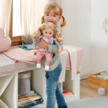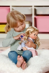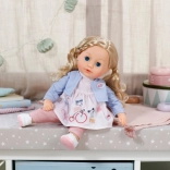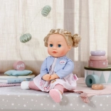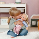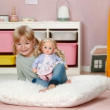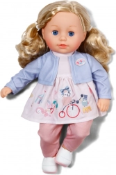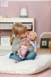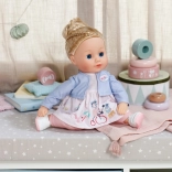 Součástí balení je kompletní set oblečků: jemné šaty s lehkým kabátkem, pohodlné legíny a boty. Díky pohyblivým končetinám se panenka snadno posazuje a obléká. Hra s panenkou rozvíjí jemnou motoriku, empatii i představivost – ideální volba jako první panenka pro nejmenší.