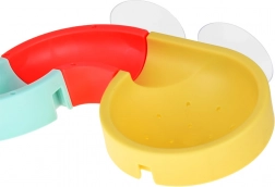 Zakřivené koryto a zakončení se sítkem vytvoří mini sprchu. Děti sledují proud vody a pohyb kapslových autíček po trase.