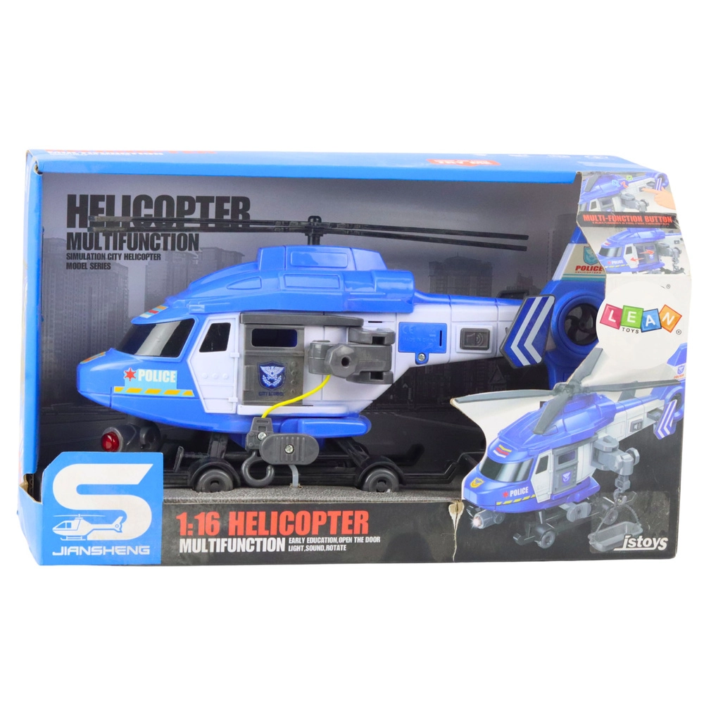 Tato detailně zpracovaná policejní helikoptéra v modré barvě přináší dětem spoustu zábavy i realistických funkcí. Po stisknutí tlačítek se aktivují světelné a zvukové efekty, otáčecí hlavní i ocasní rotor umocňuje autentický dojem a kolečka umožňují pohyb po podlaze.