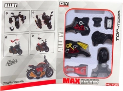 - díly pro sestavení motocyklu, návod k montáži, dárkové balení